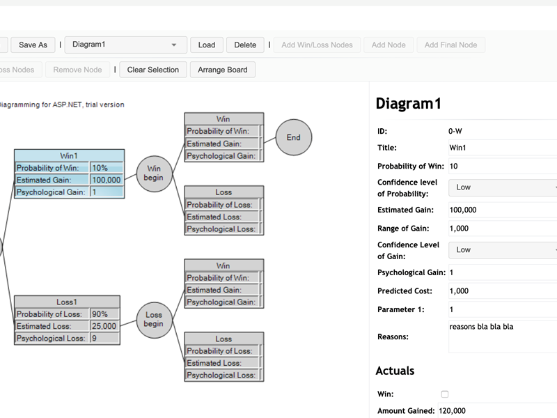 The user creates the full decision tree for the litigation process. He adds details of the process which will be helpful to him for the setup of the strategy.